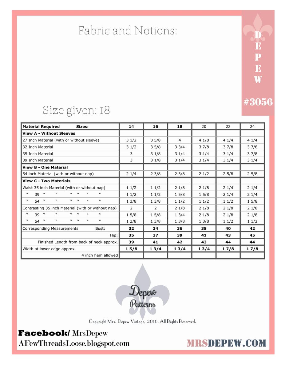 Sewing Patterns Mrs Depew Vintage